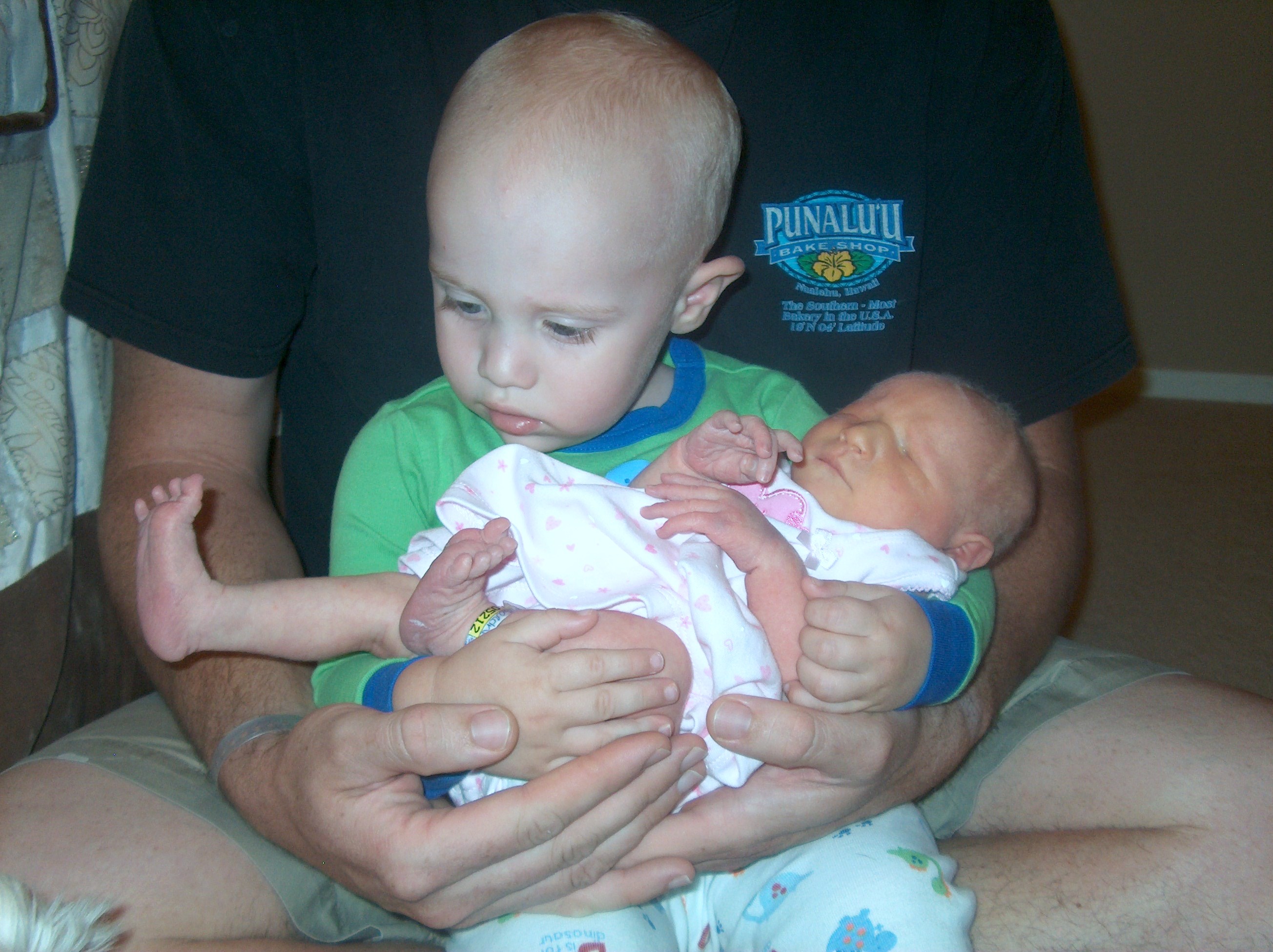 He was so amazed that this little doll was real. She wiggled and cried. She would grasp his chubby finger if he placed it in her hand. He just kept staring at her tiny hands and feet.
