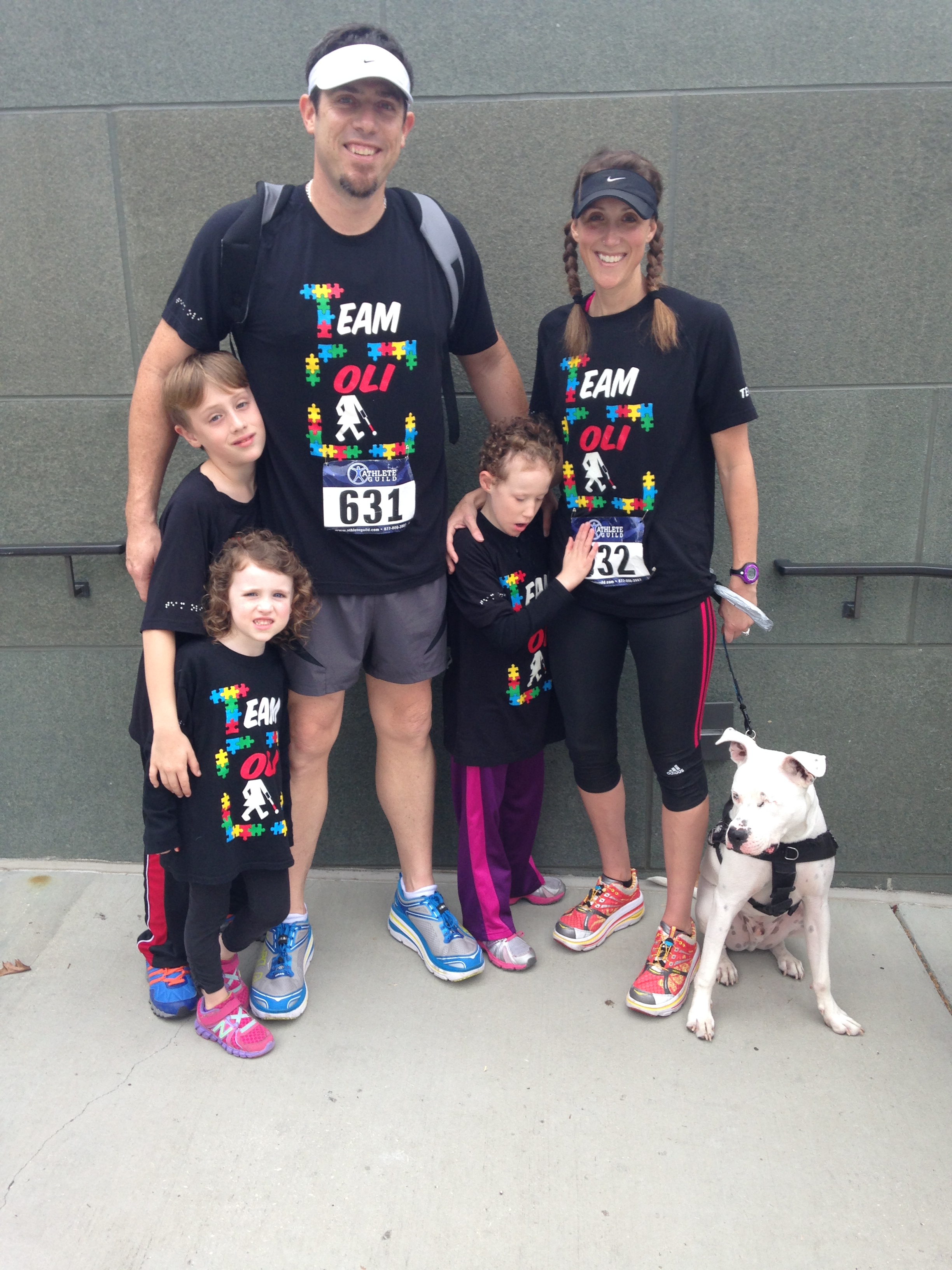When we started “we” was just Oli and myself. Now it is my husband Seth, my son Kekoa, my daughter Ginger, Oli and I, and most recently our dog Shaka. The “Baby Genius” as his trainer calls him. Shaka is a one year old rescue pup that is completely deaf and missing one eye. He is currently in training to become Oli’s service dog.